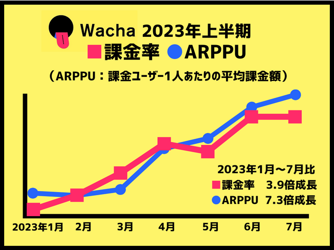 音声ライブアプリ【Wacha】2023年上半期のコミュニティが大幅に拡大。MAU、課金率、ARPPUも7ヶ月間で急速に増加!