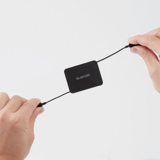本製品は、ケーブルが絡まらない巻き取りタイプとなっており、ケーブルはコネクターごと巻き取り部分に収納可能。持ち運びの際にかばんの中でコネクターがねじれたり断線したりすることを防止できる。