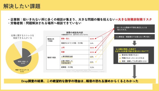 「社会の仕組みをよりよい姿に変え、ビジネスによって好循環を生み出す。」をMissionに掲げる株式会社Drop(本社:大阪府大阪市、代表取締役:米田 真介)は、労働者が働く上で困っていることや、周りの人が辛い状況にあることを企業に伝える無料のスマホアプリ「coe worker」(読み方:コエ ワーカー)をリリースしました。