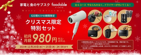 パナソニック株式会社(以下、パナソニック)は、家電と食のサブスクサービス「foodable(フーダブル)」にて、クリスマス期間限定の特別セットを用意いたしました。調理家電、厳選食材に加え、ヘアードライヤー(EH-NE5L)がついた特別セットは、初月月額980円(送料込み・税込み)で販売します。