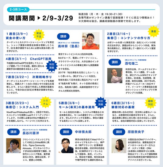 実際直面している課題解決策を考え、実際に運営中のショップに実装して結果を分析する。先取りして体験し「売上げ向上」「黒字化」するために何をするのか?といったリアルな感覚を身に着けることが出来る講座です。