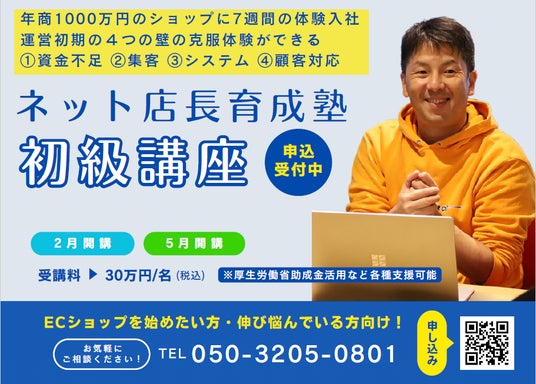 2024年2月より初級講座からスタート!運営中のショップに体験入社!運営初期の4つの壁の克服体験ができる実践型講座