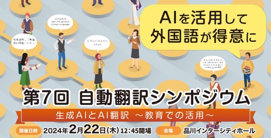 今回、「生成AIとAI翻訳 ~教育での活用~」をテーマに、7回目となる「自動翻訳シンポジウム」を品川インターシティホールにて開催いたします。シンポジウムでは、研究者による最新の技術動向や、教育者による教育現場での自動翻訳技術の活用に関する講演を行います。また、企業・団体による最新の自動翻訳製品・サービス等の展示も行います。