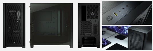 高性能PCを支えるケースは、PCコンポーネントでも人気のCorsair製『4000D Airflow』を採用。フロントに通気性の高いメッシュパネル、サイドパネルに強化ガラスを採用したミドルタワーケースです。システム部と電源ユニットを独立したチャンバーで分けることで互いの排熱による影響を与えない効率的なエアフローを確保しています。また、フロント、トップ、電源ユニット側ボトムに防塵フィルタを備えています。フィルタは簡単に取り外しが可能で丸ごと洗うことができ、優れたメンテナンス性を発揮します。