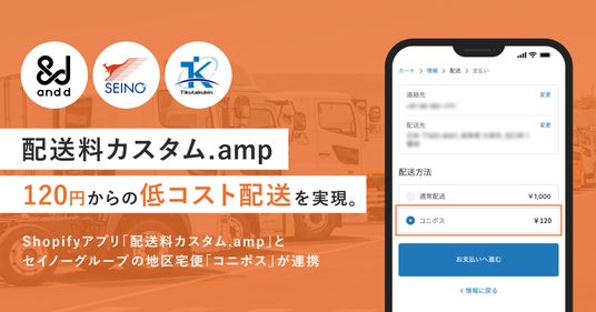 「いいモノゴトをおこす」をテーマに、Eコマース領域でアプリ開発事業を展開する株式会社and.d(本社:東京都町田市 代表取締役:深澤 大気、以下and.d)と物流大手セイノーホールディングス株式会社傘下の株式会社地区宅便(本社:東京都練馬区、代表取締役社長:河合秀治)はand.dが提供するEコマースアプリ「配送料カスタム.amp」において、1個120円で各家庭のポストに小荷物をお届けする配送サービス「コニポス」と連携し、Eコマースにおける低コストの配送の提供を開始いたしました。