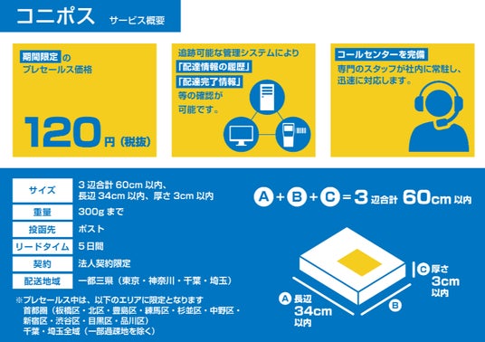 配送サービス「コニポス」は、ECサイトでの定期購入商品の発送や非接触を希望されるお客様に最も適した、Green(地域密着担当エリア細分化により効率化された徒歩、自転車による配達組織)&スロー(メール便配送インフラ)物流による新配送スタイルです。
