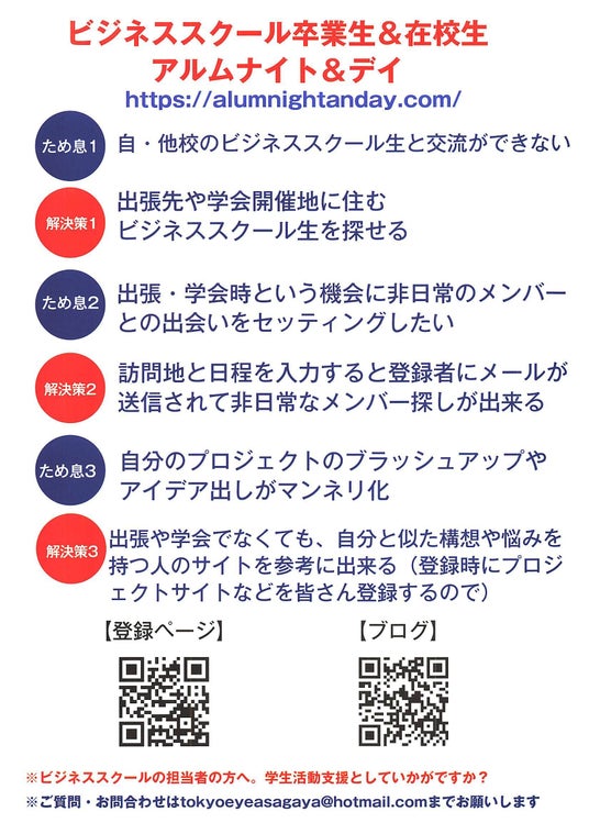 ・母校や他校のビジネススクール生との交流