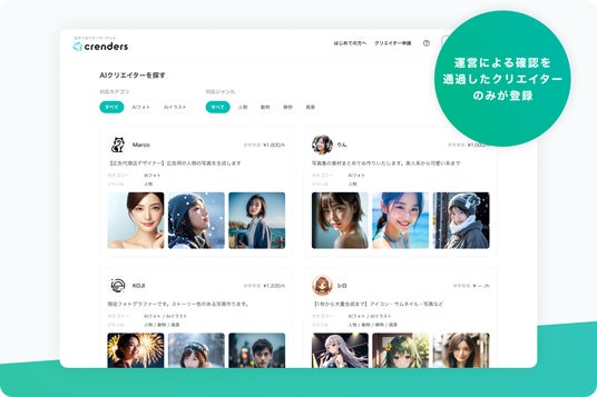 生成AIに特化した生成依頼マッチングサイト「crenders(クレンダーズ)」がリリースに向けてクリエイターの事前登録を開始
