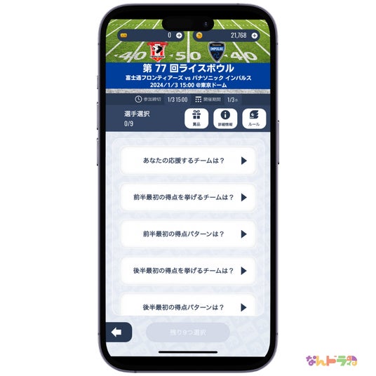今季全勝でライスボウルまで駆け上がってきた、富士通フロンティアーズとパナソニック インパルス。両チームの日本一の座をかけた注目の一戦で「なんドラ」試合展開予想を開催します。応援しているチームごとに、予想成績TOP3の方には、両チーム提供の応援グッズ等をプレゼント。