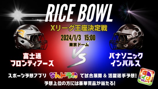 イノベーションの力で新たなスポーツ・エンターテインメントを創造し、まだ見ぬ感動と熱狂を提供するアプリ「なんドラ」を運営する株式会社なんでもドラフト(本社:東京渋谷区、代表:森井啓允)は、2024年1月3日(水)に東京ドームで開催される、アメリカンフットボール日本選手権プルデンシャル生命杯第77回ライスボウルを対象にした試合展開予想を開催します。
