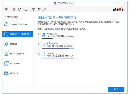 複雑な設定はなく、消去する対象を選択して、実行ボタンを押すだけで使えます。パソコンに詳しくない人でも、迷わずにお使いいただけます。