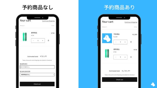 RuffRuff 予約販売とプラスシッピングが機能連携することにより、予約商品がカート内に含まれている場合に「配送日時指定(お届け希望日)モジュール」を非表示にすることが可能になりました。