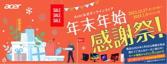 期間 : 2023年12月27日(水)午後12:00~2024年1月9日(火)午前11:59Acer公式オンラインストア トップページ