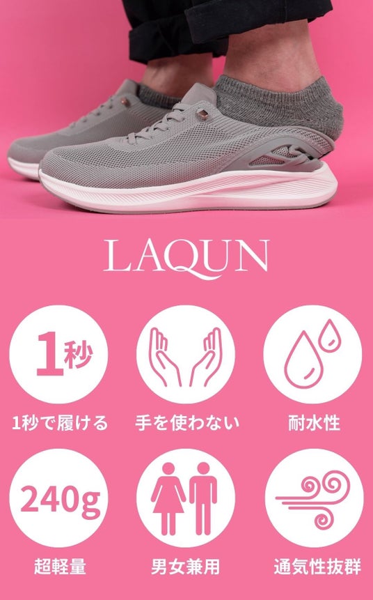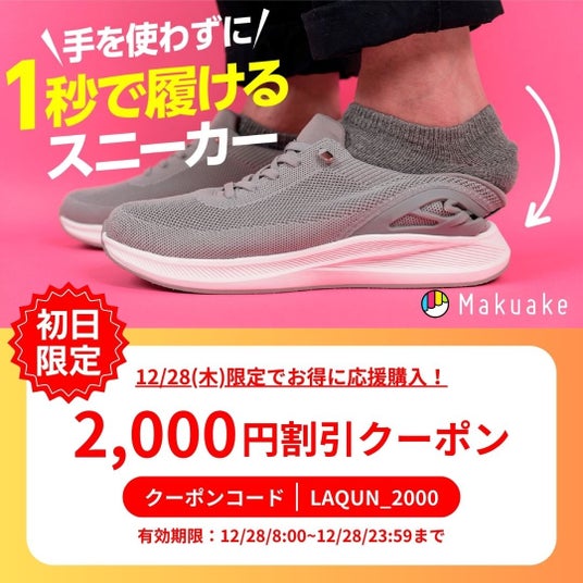 【1秒で履けるスニーカー】毎日が楽になる靴。『LAQUN(ラクーン)』がMakuakeにて予約販売を開始!