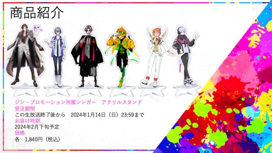 さらに新グッズ第一弾として、全10人のメンバーの等身イラストをフィーチャーしたアクリルスタンドを受注販売いたします。受注期間は2024年1月14日(日)まで、お届け予定は2月下旬となっています。