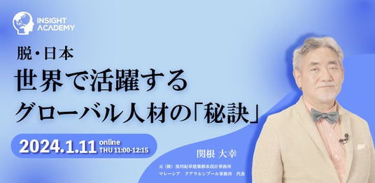 グローバル人材育成・研修業を手掛けるインサイトアカデミー株式会社(本社:東京都港区新橋、代表:北村 嘉章)は、無料webセミナー「脱・日本~世界で活躍するグローバル人材の秘訣~」を2024年1月11日(木)11:00より開催します。