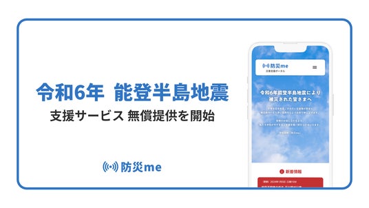 学生団体 防災me(所在地:福島県郡山市、代表:隂山弘暉、以下:防災me)は、2024年1月6日(土)より「令和6年能登半島地震」により被災された地域の復興に貢献するべく、2つのサービスの無償提供を開始いたします。