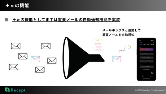 デジタルウォレット機能に加え、メールボックスと連動して重要メールを自動通知する機能も具備しています。