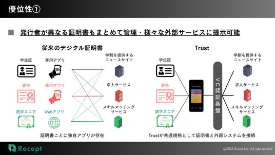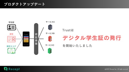 合同会社Recept(本社:東京都渋谷区、代表社員:中瀬 将健, 大島拓也)は、デジタルウォレット機能を中核とする情報管理アプリ「Trust」におけるデジタル学生証の発行を開始いたしました。
