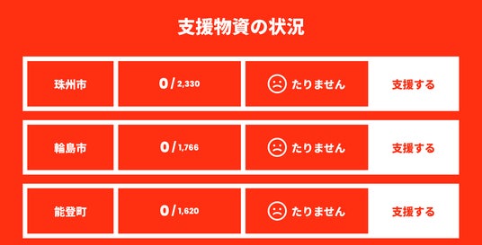 支援物資の状況|各地域の支援物資の充足・不足状況を情報収集し可視化