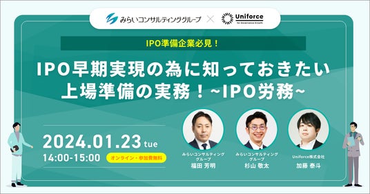 【1/23 (火) 無料オンラインセミナー】IPO早期実現の為に知っておきたい上場準備の実務! ~IPO労務~