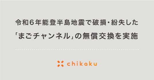株式会社チカクは、今回の地震で特に大きな被害を受けた地域(新潟県、富山県、石川県、福井県)にお住いの「まごチャンネル」をご利用中の皆様に対し、地震で破損した「まごチャンネル」を無償で交換させていただくことをお知らせいたします。