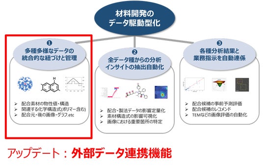 材料開発における顧客要求レベルは上がる一方で、過去実験データを基にした開発は頭打ちであるため、より多くのデータが必要