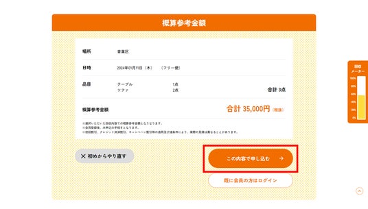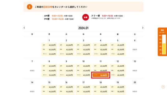 回収場所・品目と回収日時を選択するだけで概算金額をご覧いただけます。