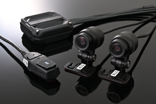 「Mio MiVue」シリーズは、オートバイの過酷な環境に耐える高い防水性・防塵性・耐振動性を備えた、スマートフォンで快適に操作できる超小型ドライブレコーダー。前後カメラにはソニー製の高感度「Starvis(TM)」CMOSイメージセンサーを採用し、高画質フルHD200万画素の高速録画が可能です。