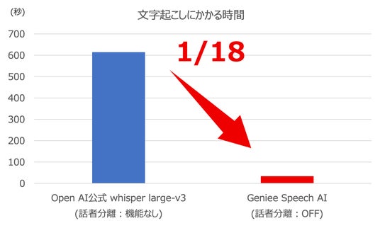 ※2 : OpenAI公式の文字起こしシステム ”whisper large-v3” の18倍(当社調べ)