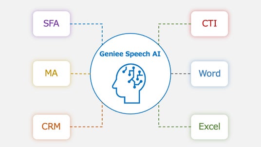 例えばSFA、MA、CRMなどは、記録の手間がかかることで社内浸透しづらいという課題を抱えていましたが、Geniee Speech AIと連携することで、記録作業を削減できます。