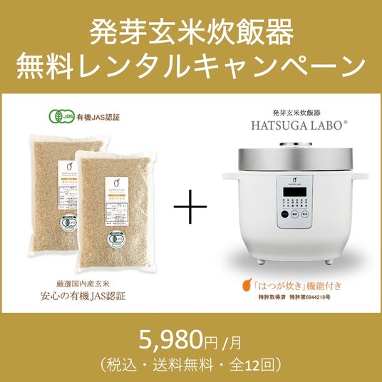 有機玄米のサブスクコースに発芽玄米炊飯器「HATSUGA LABO(R)」が無料レンタルできるキャンペーンを開始!