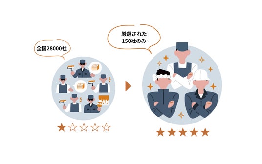 また、全国150社の塗装業者様との契約が完了しましたら、この事業への新規募集は終了致します。信頼性とサービス品質に優れた塗装業者様だけが所属することになるため、顧客も安心して、外壁塗装業者紹介サイト「ペイプロ」をご利用いただけるようになります。