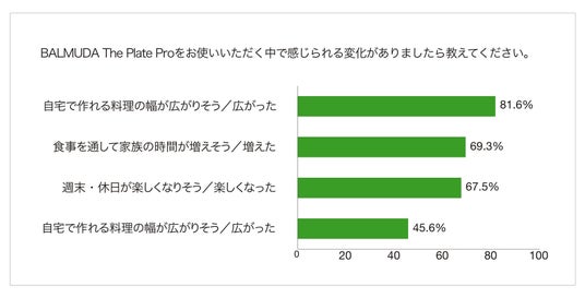 BALMUDA The Plate Proは、高い蓄熱性を実現する6.6mmの独自の3層構造のクラッドプレートと、プロの焼きあがりを叶える正確な温度制御が特徴のステンレスホットプレート。ご購入いただいたお客様からは「料理が楽しくなった」「ステーキを焼いたら家族から歓声があがった」などのお声をいただきました。ご利用者の方へのアンケートにおいても製品満足度は80%を超え、多くの方に「自宅で作れる料理の幅が広がった/広がりそう」という回答をいただいています。(※2)