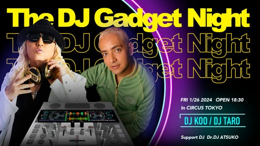 2024年1月26日(金) に渋谷「Circus Tokyo」にて、FJ1の実機筐体(2色)を実際に“見て触れる”ことができる一夜限りのDJイベント「The DJ Gadget Night」を開催します。イベントでは、スペシャルゲストのDJ KOOによるGODJ Plusを使用したDJプレイの他、DJ KOO、DJ TARO、株式会社ミューシグナル代表取締役 宮崎の3名によるトークセッションも実施予定。