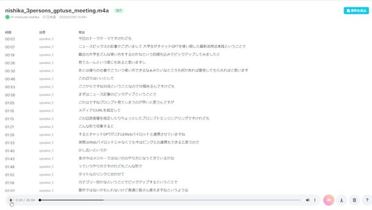 さらに、弊社にて独自に開発した、声紋登録を必要とせず、音声データのみから完全自動で話者特定を行うAIも搭載しています。