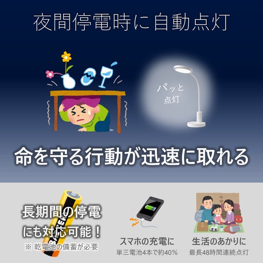 卒業・入学を節目に、普段使いすることで停電対策になる「目と命を守る」デスクライトをぜひご検討くださいませ。