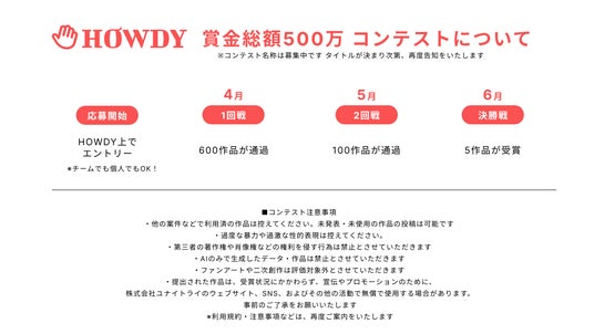 HOWDYリリース後、「500万円のクリエイター向けコンテスト」のタイトル・クリエイティブを募集します