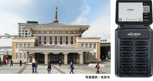 WiFiBOXは現在、関西エリアでは関西国際空港をはじめ、伊丹空港、京都総合観光案内所(京なび)、三宮HATENAなど計11カ所への設置を行っておりますが、今回奈良県への設置は初めてとなります。特にJR奈良駅から車で約5分のところに位置する、鹿とのふれあいが楽しめる奈良公園や、大仏で有名な東大寺周辺には多くの観光客が訪れることから、導線となる奈良市総合観光案内所へ設置することで、訪日外国人旅行者の通信需要へのお応えや、奈良市総合観光案内所で受け取って関西国際空港で返却するなど、地域を越えて、より利便性高くご使用いただけるようになります。また、日本国内における観光やビジネス、月末のギガ不足など国内における一時的な利用にもご活用いただけるため、設置することとなりました。