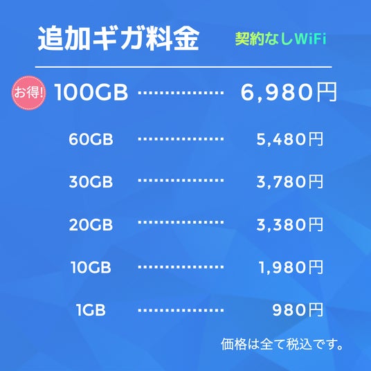 契約なしWiFi・国内専用GBチャージ|980円(税込)