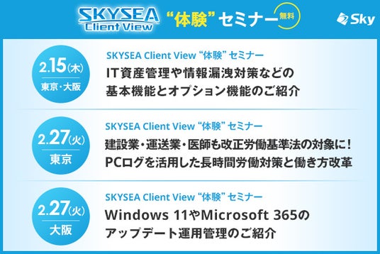 「SKYSEA Client View」 2月開催ハンズオンセミナー(東京・名古屋・大阪)