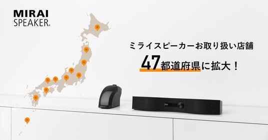 「100年のスピーカーの歴史」に聞こえにくさの解消という新しい視点を提示し、特許技術「曲面サウンド」をもってサウンド領域に新たな価値と可能性を提供する株式会社サウンドファン(所在地:東京都台東区、代表取締役社長:山地 浩、以下:サウンドファン、以下「当社」)は、テレビの音量上げずに、言葉くっきり「ミライスピーカー(R)」を取り扱う店舗が全国47都道府県に拡大※1したことをお知らせいたします。