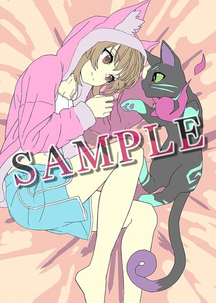 妖魔形態(ネコ型)と業魔形態(ヒト型)、2体のクオンが並び立つ、ドットイラストを使用したアクリルキーホルダー。