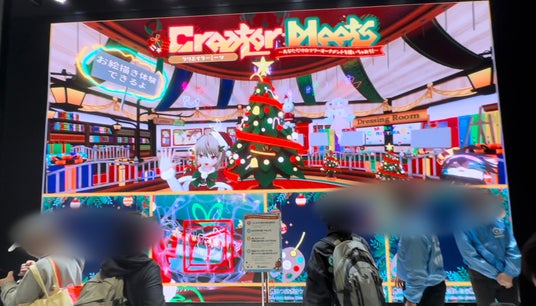 AvatarMeetsは、現実とバーチャルをシームレスに繋ぐ画期的なコンテンツです。 現実にいる人はヘッドセットなどを被ることなく、バーチャルのユーザーとアバターを介して交流することが可能です。 また、別会場にあるAvatarMeetsの会場とも連携しており、アバターの動きや声だけでなく、タブレットで描いたイラストや文字を使ってもコミュニケーションができます。 手を挙げるとアイテムやおもちゃが出てきて、よりインタラクティブな交流体験が可能なコンテンツになっています。