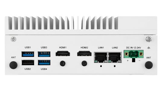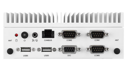 ファンレス設計の「EI-53」は、放熱性に優れたアルミニウム合金筐体を採用しており、動作温度は-20℃~60℃、DC電源は、12-24Vと幅広い入力範囲に対応しています。さらに、様々な環境での利用を想定し、外部からのノイズ耐久性の規格である「IEC 61000-6-4、6-2」や、耐振動「IEC60068-2-64」、耐衝撃「IEC60068-2-27」に準拠していますので、埃や熱、振動など外的影響を受けやすい場所でも安心してご利用いただける堅牢なエッジコンピュータです。