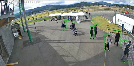 本実証実験では、2ヵ所の入場ゲート、4つの駐車場に向かう道路にカメラを設置し、映像を記録しました。それらの映像を当社のAI画像解析サービスを用いて解析し、入場者の入場数や属性、及び、駐車場に向かう車の入場数、混雑の指標となる滞留時間を抽出し、その効果を検証しました。