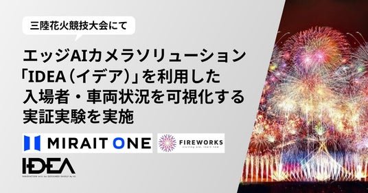 Intelligence Design株式会社(本社:東京都渋谷区、代表取締役:中澤拓二、以下「当社」)は、通信建設大手の株式会社ミライト・ワン(本社:東京都江東区、代表取締役社長:中山俊樹、以下ミライト・ワン)と、FIREWORKS株式会社(所在地:岩手県陸前高田市、代表取締役:浅間勝洋、以下FIREWORKS)と共に2023年10月にFIREWORKSが開催した「三陸花火競技大会」において、イベント開催時の人や車の集中という課題に対処するため、AI画像解析技術を用いて入場者や駐車場への車両の状況を可視化する実証実験を実施いたしました。