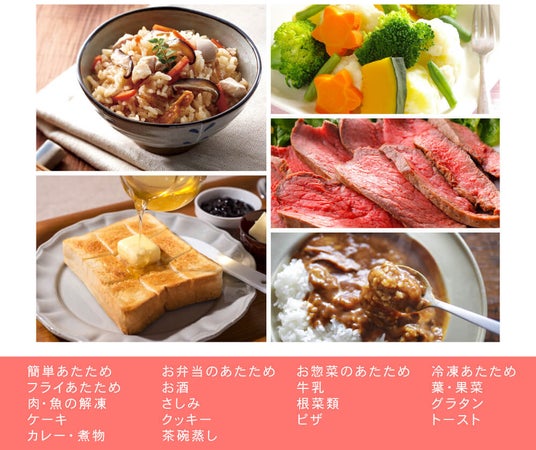 搭載されている豊富な自動メニュー機能によって、あったかごはんを手軽にワンタッチで簡単に調理することができます。ラインナップは以下の画像の下部にある通り全18種類で、一人暮らしの方や忙しい方にもぴったりの機能です。