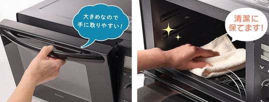 本製品はオーブン、レンジ、グリルの3つの機能を兼ね備えています。上下のヒーターでムラなく食品を焼き上げるオーブン、お料理の温め直しや冷凍食品の加熱に便利なレンジ、肉や魚を一気に焼き上げるグリル。これらの機能を1台で手軽にご利用いただけます。
