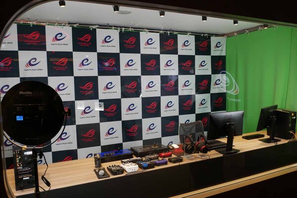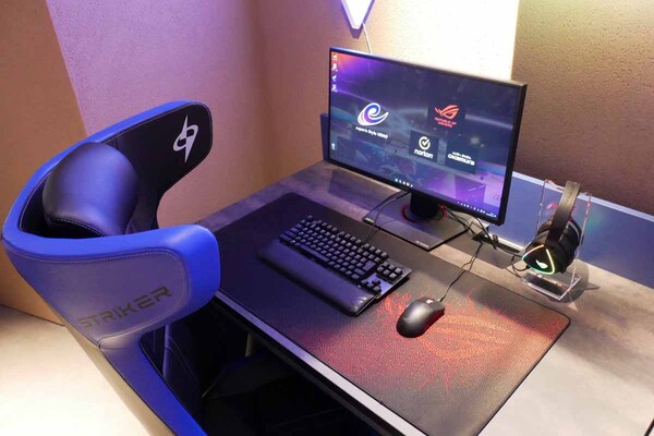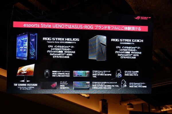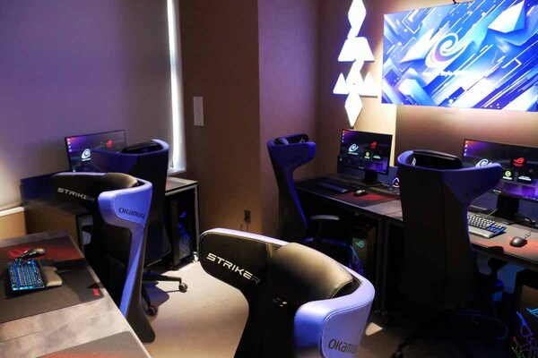 個室ブースは2部屋あり、チーム練習や少人数での対戦会などに利用可能。加えて、プラチナスポンサーのASUSのゲーミングパソコンやディスプレー、デバイスが設置してあり、快適にゲームプレイできるという。